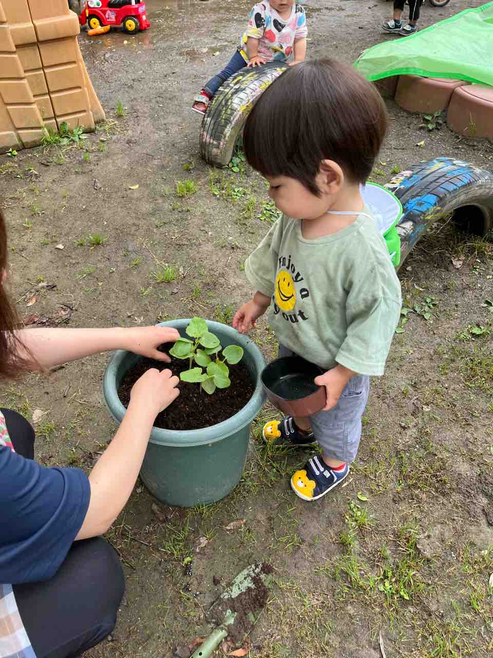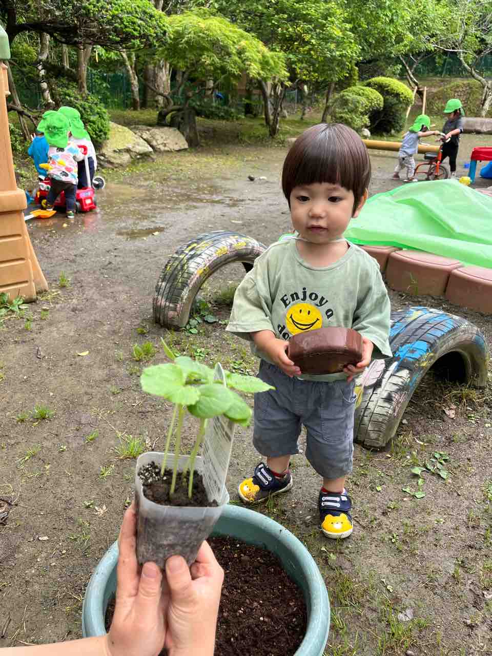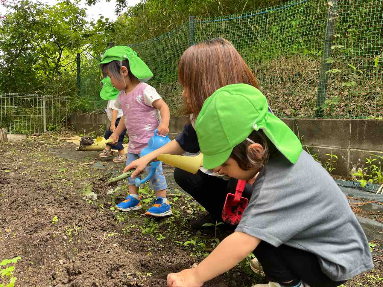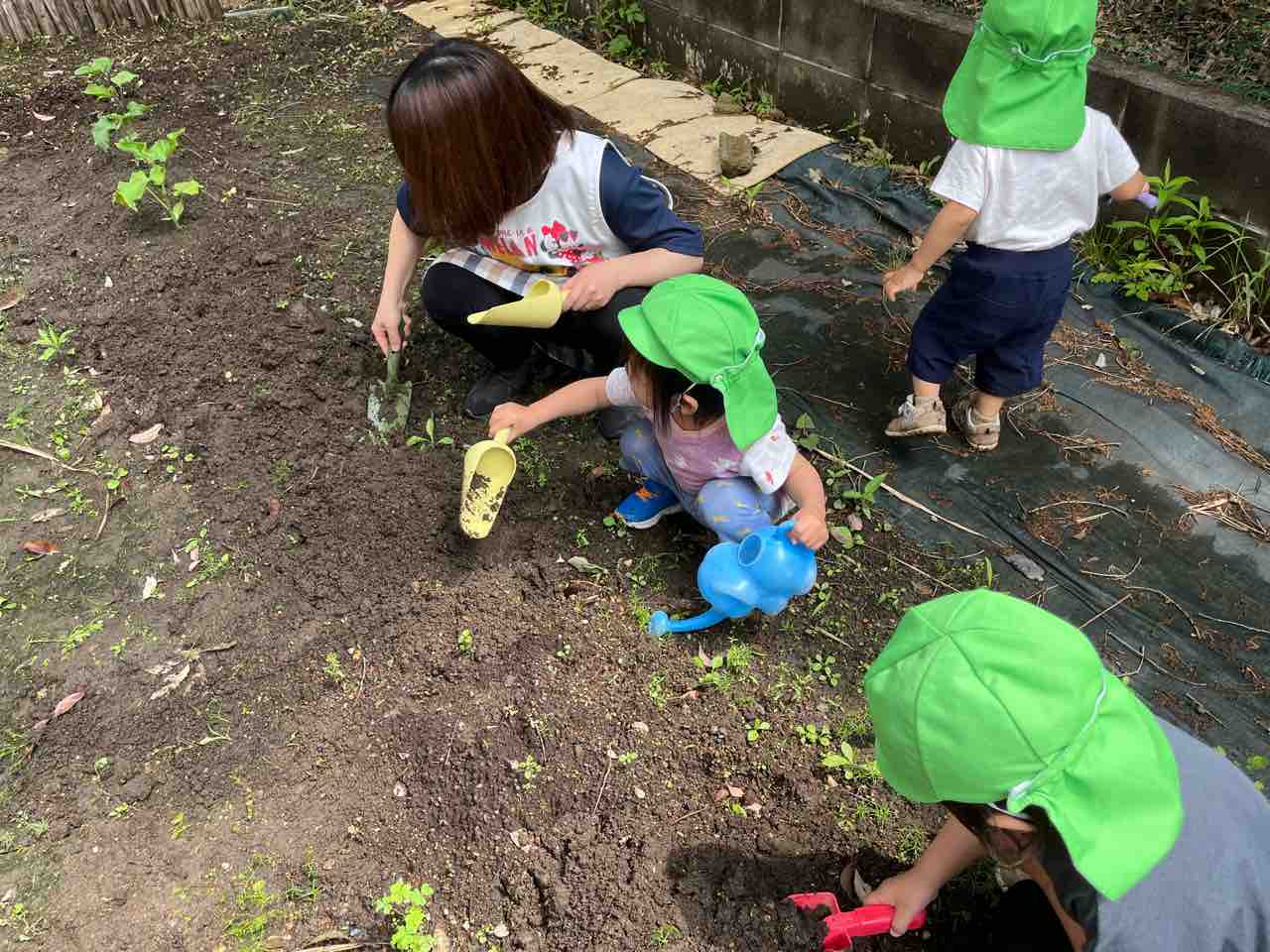ひとつ植えると満足した子どもたちは