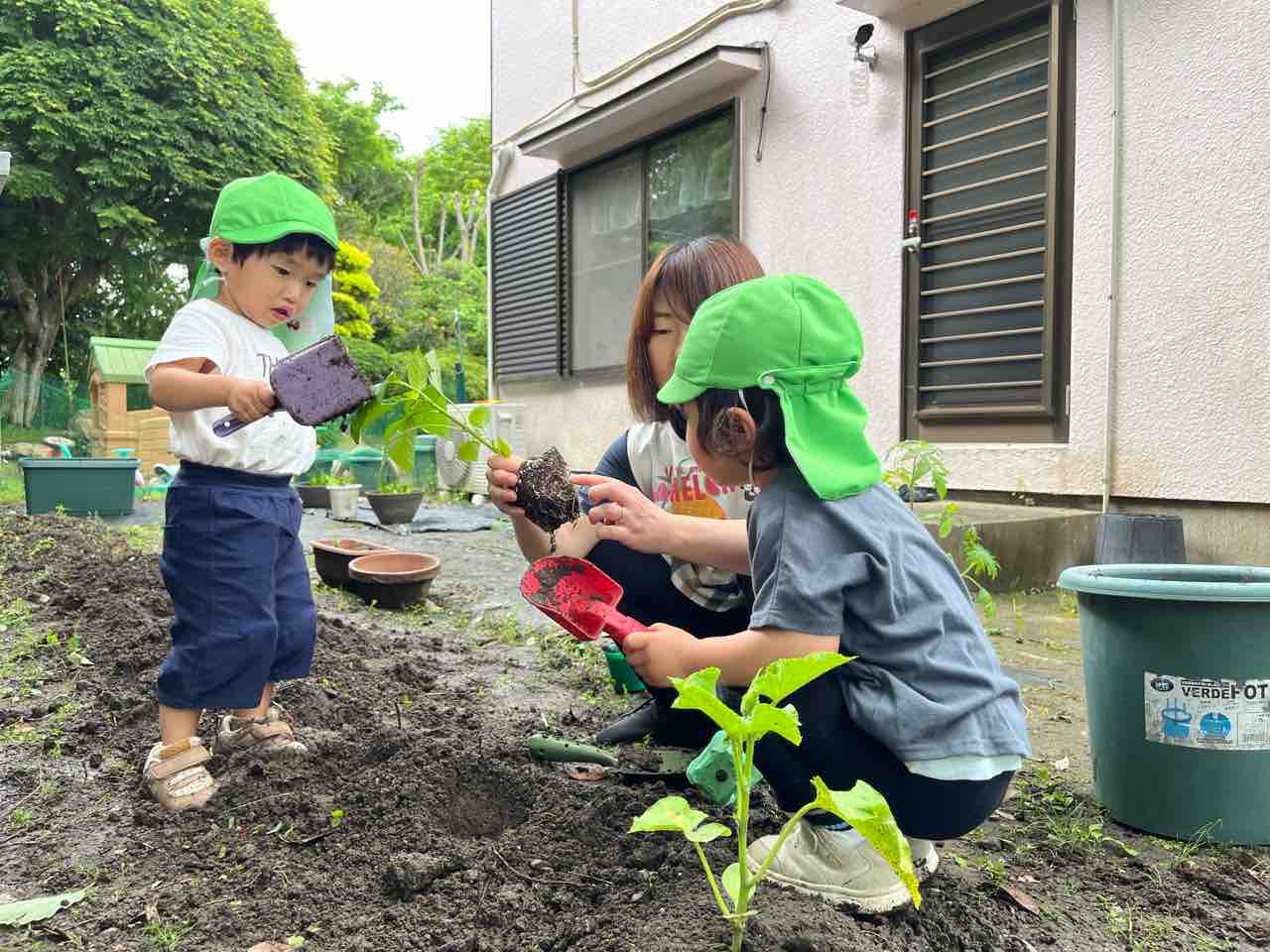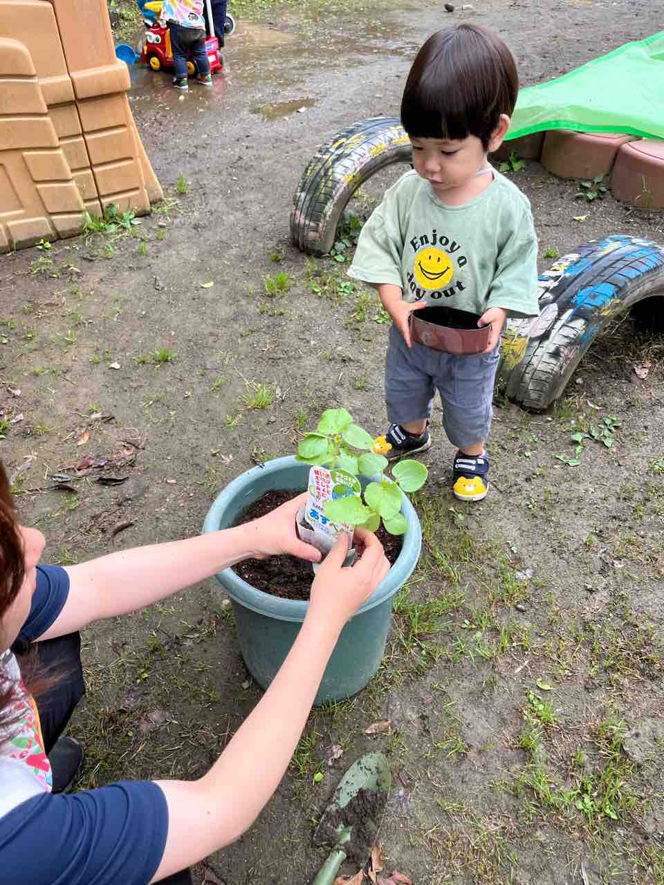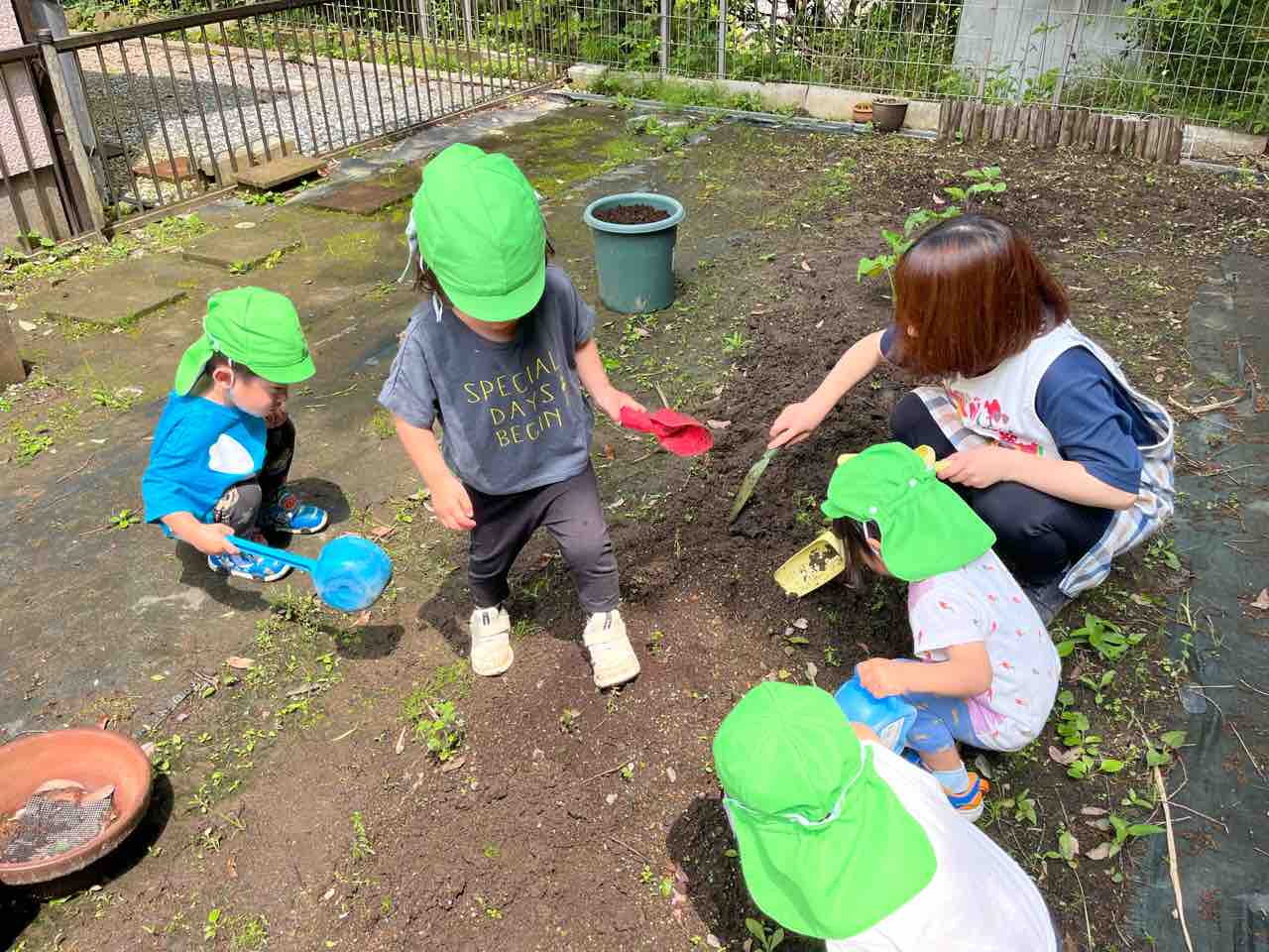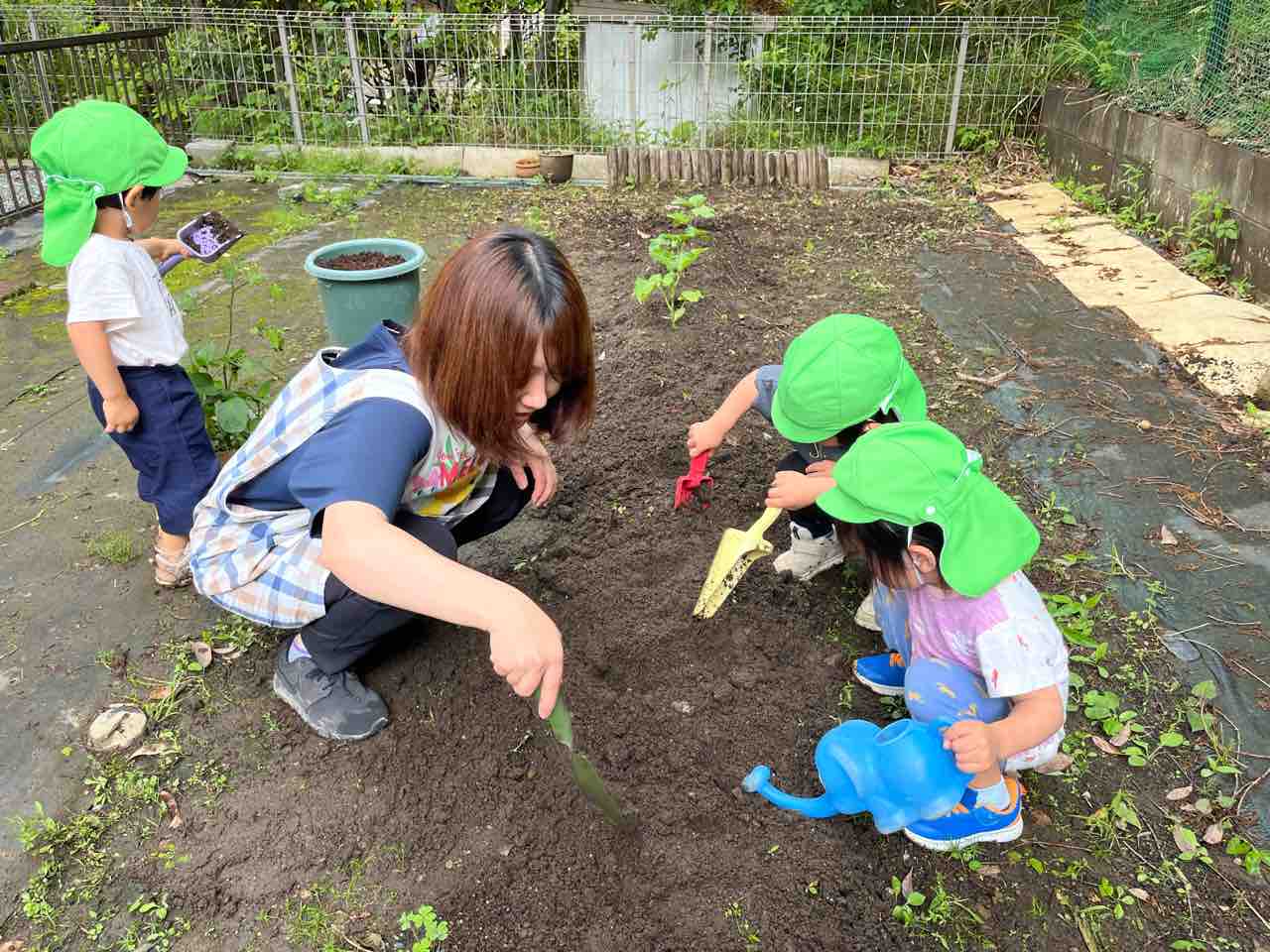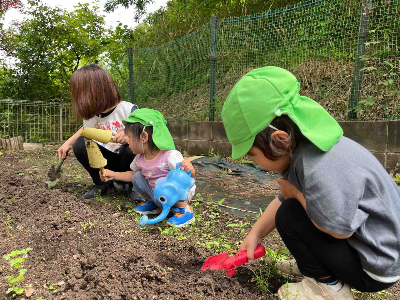 ひとつ植えると満足した子どもたちは