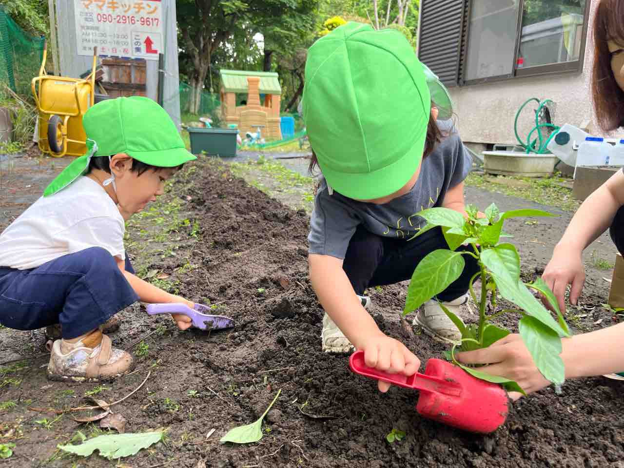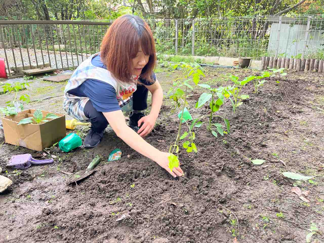 あとは先生よろしく!と行ってしまいました。残りの野菜たちを一生懸命に植えました